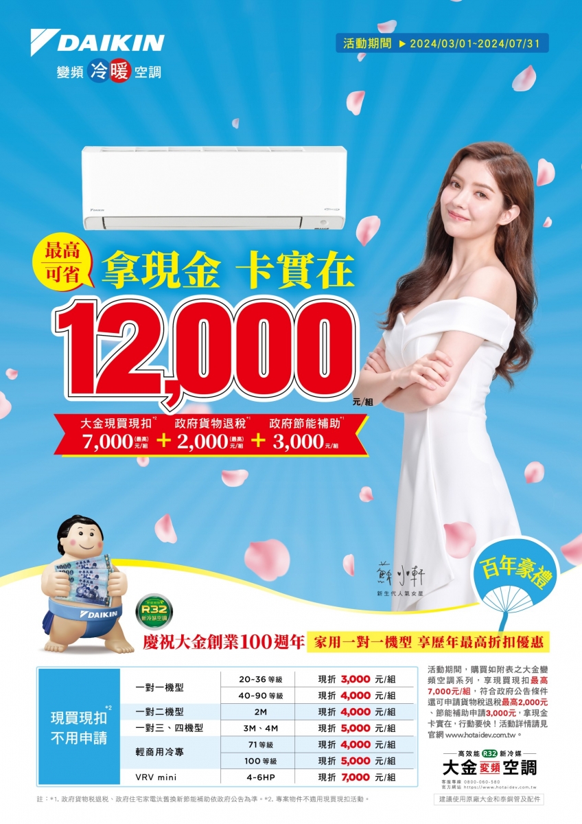 | 限時送好哩!大金空調百年豪禮活動 冷氣折扣三月開跑!